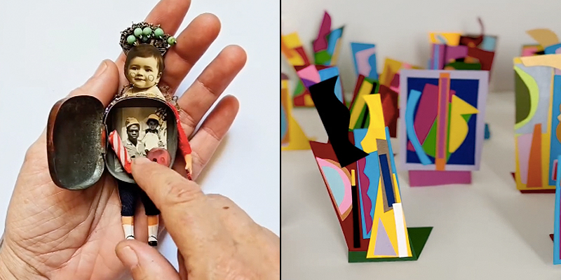 d’abord les petits personnages de Cecile Perra. le corps est constitué d’une boite, en métal ou en carton. elle y ajoute une tête, des bras et des jambes et voilà. la surprise est quand on ouvre le corps. on trouve alors quelques éléments qui nous suggèrent le monde intérieur du personnage. je vous envoie sur un projet, mais sa page est remplie d’objets vivants, colorés et tellement originaux. il y a beaucoup à voir dans l’univers de cette artiste.