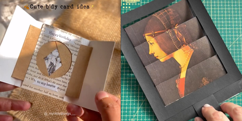 la première suggestion est de mylittlethings qui aime beaucoup beaucoup travailler avec les cœurs. par le mystère des algorithmes, instagram m’a envoyé à un moment cette façon toute simple pour mettre un peu de mouvement dans une carte sans être du pop-up.