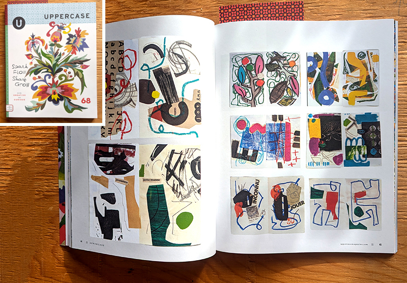 et puis, en feuilletant la nouvelle édition du Uppercase qui venait tout juste d’arriver, j’ai trouvé quatre pages sur mes carnets (!!!) dont trois pages uniquement de photos. Joy présente trois artistes, dont moi. je ne m’attendais pas du tout à ça. j’ai réalisé que ces pages de carnets auraient pu avoir été faites la semaine passée, mais elles dataient de presque quatre ans… c’est bon ou mauvais signe? en tous les cas, merci de cette belle opportunité.