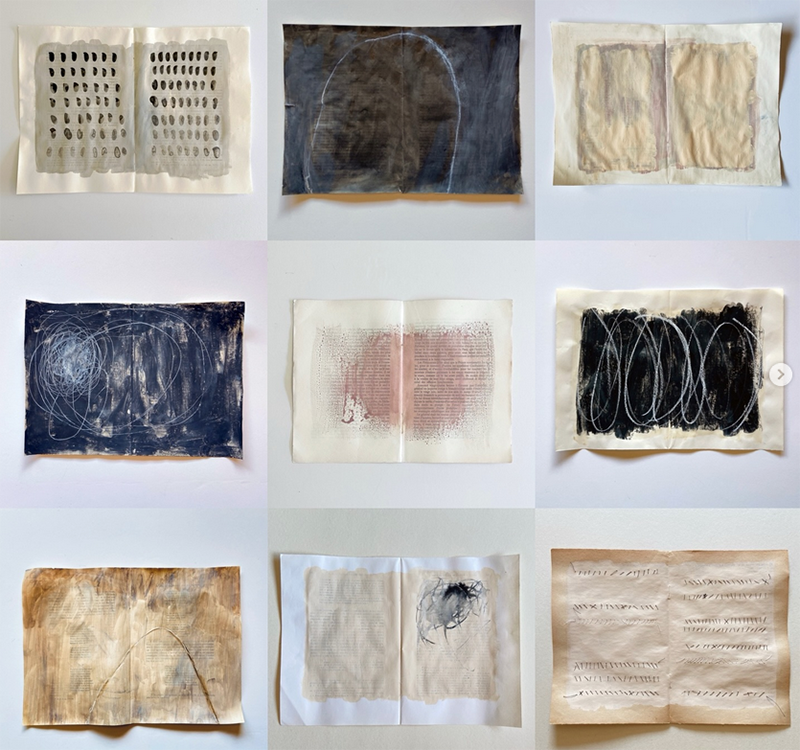 je vous propose aujourd’hui de découvrir l’artiste portugaise Ana Frois. visitez son fil instagram d’abord, c’est à cet endroit qu’on en voit le plus. je parle de pages, car cette artiste présente des tonnes de pages de livres sur lesquelles elle a dessiné, peint ou est intervenue de bien des façons. une magnifique recherche, j’ai aimé tout ce que j’ai vu.