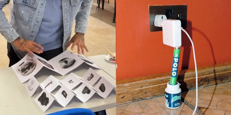mon deuxième clin d’œil est sur la créativité et la débrouillardise, qui vont souvent ensemble. cette série de photos de Yann Stofer présente comment brancher difficilement un appareil en voyage. très souriant. nous avons toutes et tous déjà été confronté à ce genre de problème. que quelqu’un y voir de l’art me rassure sur la nature humaine. ce projet se nomme «Everyday Totems».